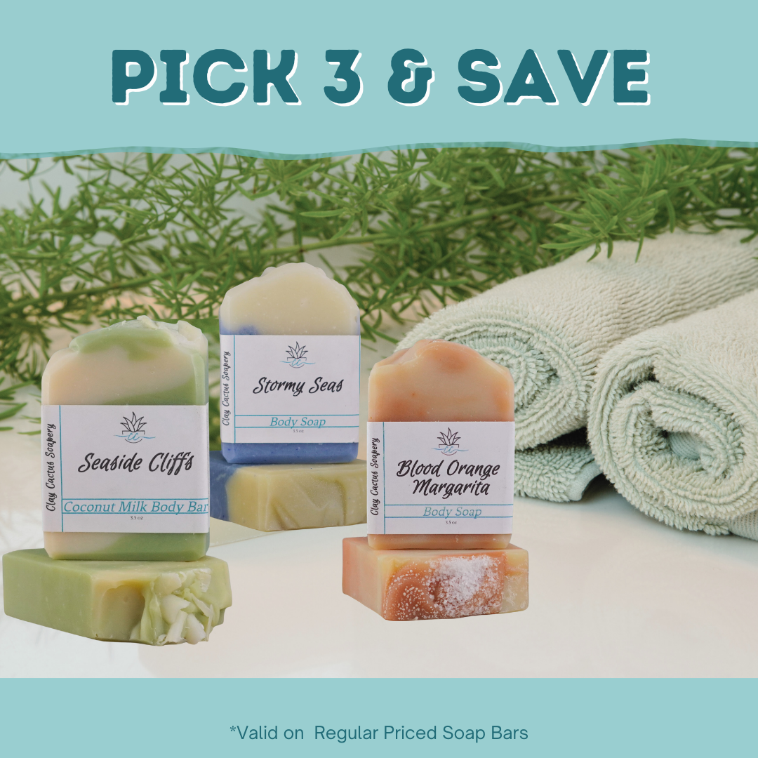 Transform Your Shower Routine with Our Luxurious Soaps and Enjoy Extra Savings when You Mix Any 3+ Regular Priced Single Bars.